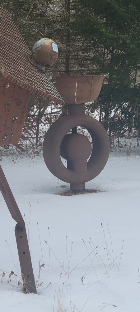 Bijan moved to the US in 1978 and immediately began working on his 8-acre property. Today this property features over 100 sculptures varying from found metal sculptures to carved granite. Bijan seeks to constantly try new styles, never repeating the same one twice among his works. The subject matter also varies widely; there are landscape images, abstracts, and figures. However, they are all connected by the theme of circles. To Bijan everything is cyclical - the sun, earth, moon, life, greed – and that is reflected in the formal expression of his work. His art also reflects his interest in hard-to-find Industrial era metals and bronze castings.