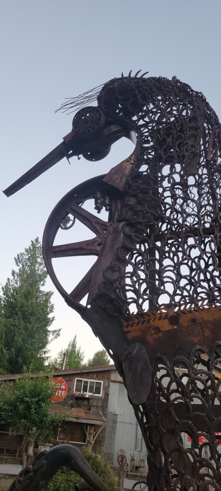 He thought, instead of hauling the art to people, he could have a place where people gather to view all his work together. In 1998, he bought a four acre piece of land where his imagination and creativity could now run wild. Recycled Spirits of Iron, also called Ex-Nihilo Sculpture Park, has sculptures ranging from miniature to monumental that depict objects natural to mystical. Visitors will be greeted by a 40-ft seahorse, colossal spider, oversized high wheel, rusty train, and more as the current artist on site, Jason Bechtold is still creating works.