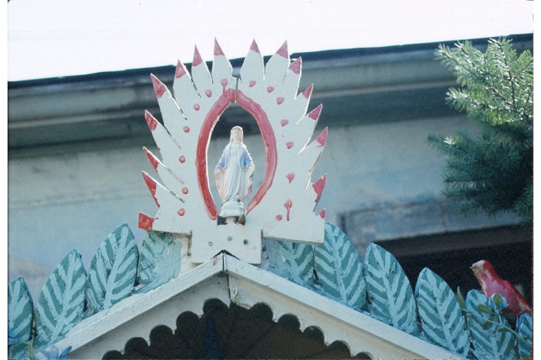 Piacenza retired from the store in 1952 and dedicated more time to writing poetry, painting, and constructing bird-house models of churches and cathedrals, using photographs from postcards, newspapers and National Geographic, as well as his own memories, as sources for his work. “I took up a natural hobby which from my boyhood I had always liked and that was painting and so for many months it was my favorite pastime,” he said. His work reflects his interest in literature, history, nature and architecture and his Catholic upbringing. Piacenza covered the inside and outside of his home in murals and installed the bird-house models outside his home in Highwood. In the early 1970s, art students and collectors began visiting Piacenza, leading to solo exhibitions at the Hyde Park Art Center and the Museum of Contemporary Art Chicago.