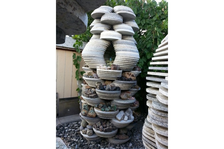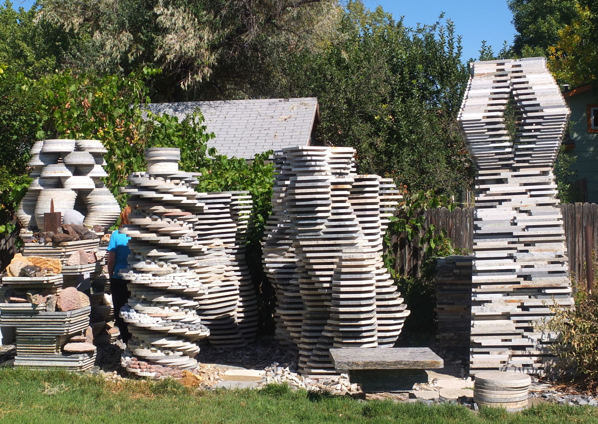 Most professional stonecutters usually trash the round, oval or rectangular cutouts that are removed from granite slabs to leave room for the sinks in their customers’ kitchen and bathroom work. However, instead of throwing them away, Brown started taking them home. In 2008, he decided to tile a path alongside his new home in Fort Collins with the discarded slabs. After building horizontally – first a walkway, then a patio and some decorative landscaping - he started going vertical, stacking the constant stream of incoming remnants into statues.