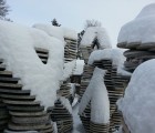 Brown’s earliest pieces were simpler in design. Now the patterns are becoming more and more complicated, with pieces twisting, turning, and jutting out into such complex arrangements that it is difficult to identify the center of balance or fathom how each sculpture holds its shape. Additionally, he has become more adventuresome with not just design, but with scale. Several pieces are starting to peak into the 15-foot range. One potential issue is weight; these are heavy slabs resting on top of heavy slabs. His process is to stack a sculpture several feet tall, and then let it sit for a few months, making sure it does not sink or topple over. Then, once Mother Nature gives him the A-OK, he adds more layers.