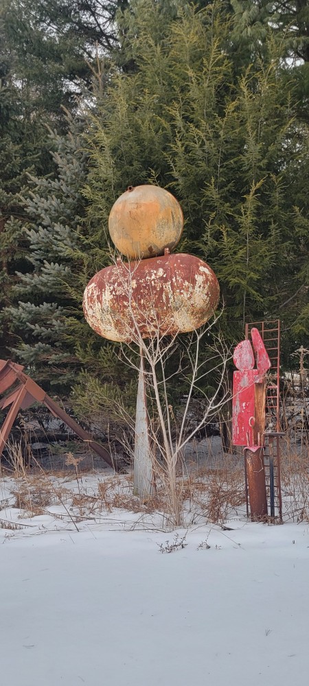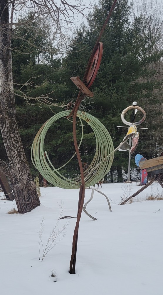 Bijan moved to the US in 1978 and immediately began working on his 8-acre property. Today this property features over 100 sculptures varying from found metal sculptures to carved granite. Bijan seeks to constantly try new styles, never repeating the same one twice among his works. The subject matter also varies widely; there are landscape images, abstracts, and figures. However, they are all connected by the theme of circles. To Bijan everything is cyclical - the sun, earth, moon, life, greed – and that is reflected in the formal expression of his work. His art also reflects his interest in hard-to-find Industrial era metals and bronze castings.