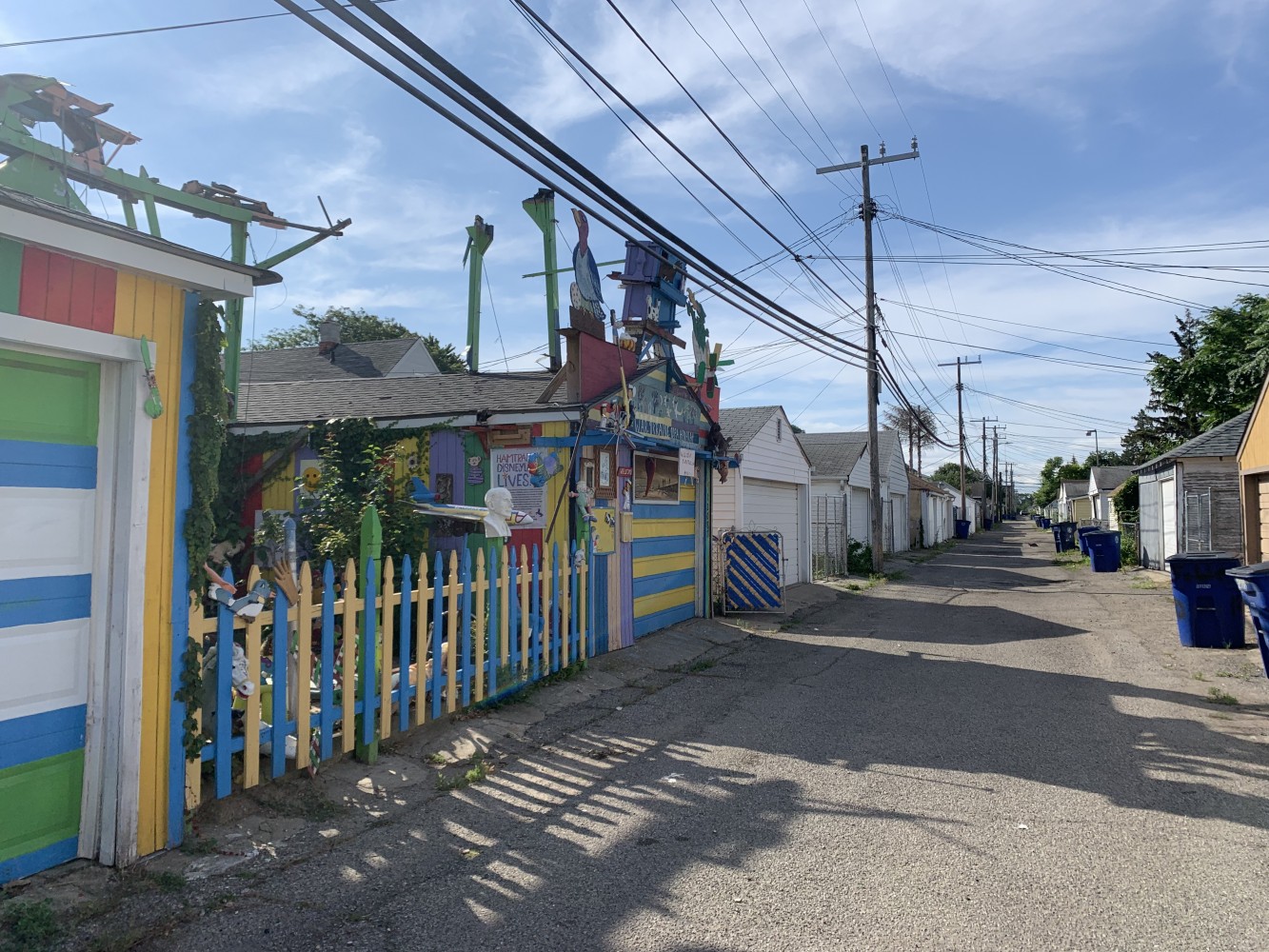 Update 2021: While the site remains in good condition, many pieces of the installation have been removed for conservation. A sign posted on site reads: "Despite appearances, Hamtramck Disneyland is being preserved! Due to age and the ravages of Michigan weather, most of the lumber supporting Mr. Szylak's was badly rotted and in danger of further collapse. We decided to take it down ourselves and replace it in the near future with a sturdier and more versatile infrastructure upon which we can reinstall the original horses, whirligig, signage, and toys, as well as new artworks contributed by our many volunteers. It will also allow us to reintroduce lights and sound to the project, as Mr. Szylak intended."
