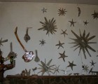 In addition to his installations in and around the Bar, there is a display of geological fossils (the Museo Paleo-Artístico), a huge space he is renovating for local ethnographic materials, and, most astonishing, a lower open-air property of some 3.5 hectares, to which he has moved some 1500 burnt tree trunks, scarred and killed after a huge wildfire in 2009. He intervenes very slightly with these monumental wooden forms as well, and has dubbed these works Troncosaurios (not directly translatable, this invented word is a cross between the word for tree trunks [troncos] and that for dinosaurs [dinosaurios]. Many do, in fact, seem to have a rather prehistoric feel, mimicking, perhaps, the real monumental creatures that once roamed these hills (Buenache de la Sierra is home to a renowned paleontological site). Some of these works are suggestively figurative; they may evoke running animals, many-legged lizards, slithering reptiles, or a wide range of other beasts, all seemingly quite at home in their new location and comfortable with each other.