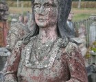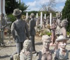 Albert began making figurative sculptures and busts, applying cement to iron frame infrastructures. He placed the works in the garden around his hand-built house. Most of the 420 sculptures he eventually created represented anonymous people going about everyday tasks, but he also produced some statues of political personalities, celebrities, and characters from fairy tales, basing his depictions on magazine photographs.Around 1989 Albert became ill and reserved his energy for maintaining the site rather than creating new works. Before his death, he sold all of his work, for a symbolic amount, to the community of Nantillé. An Association of Friends became active in promoting protected status for the garden, and as a result in 2011 the site became classified as a Historical Monument. In 2017 a restoration campaign was announced, which will include the filling of cracks, the removal of moss growth, and the application of wax to protect the sculptures.