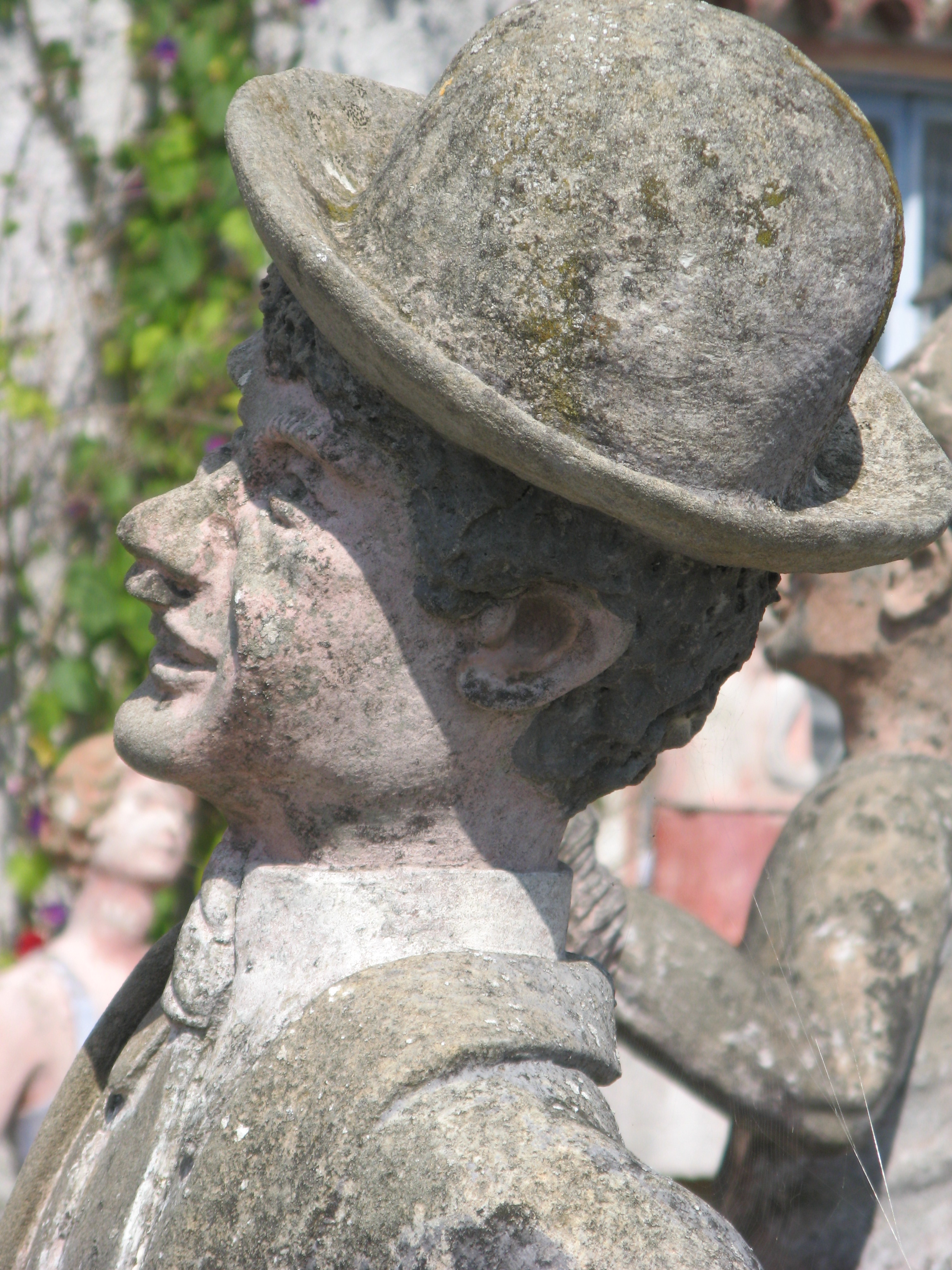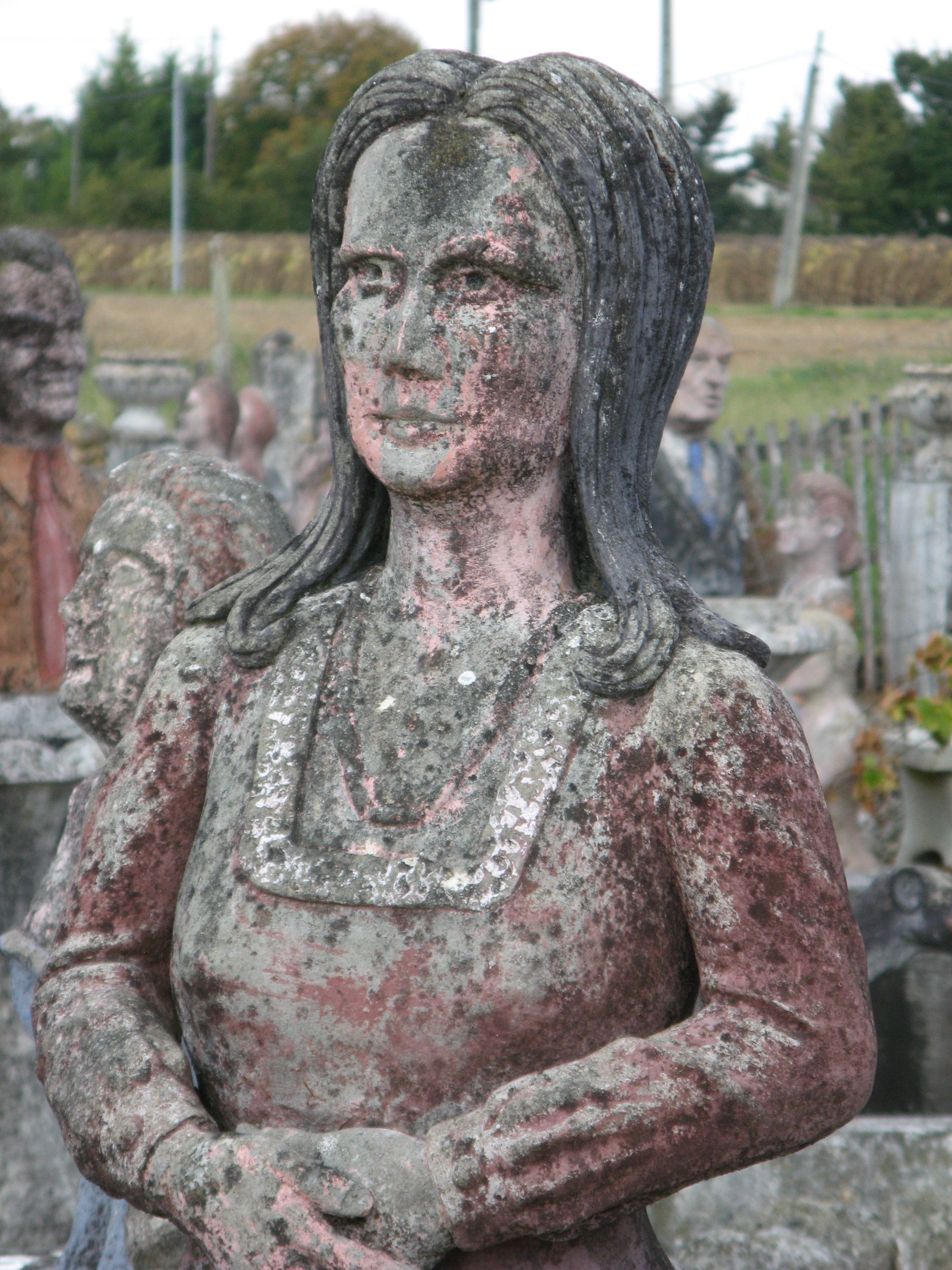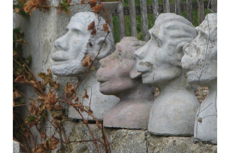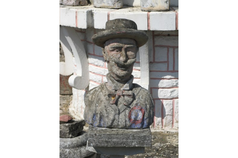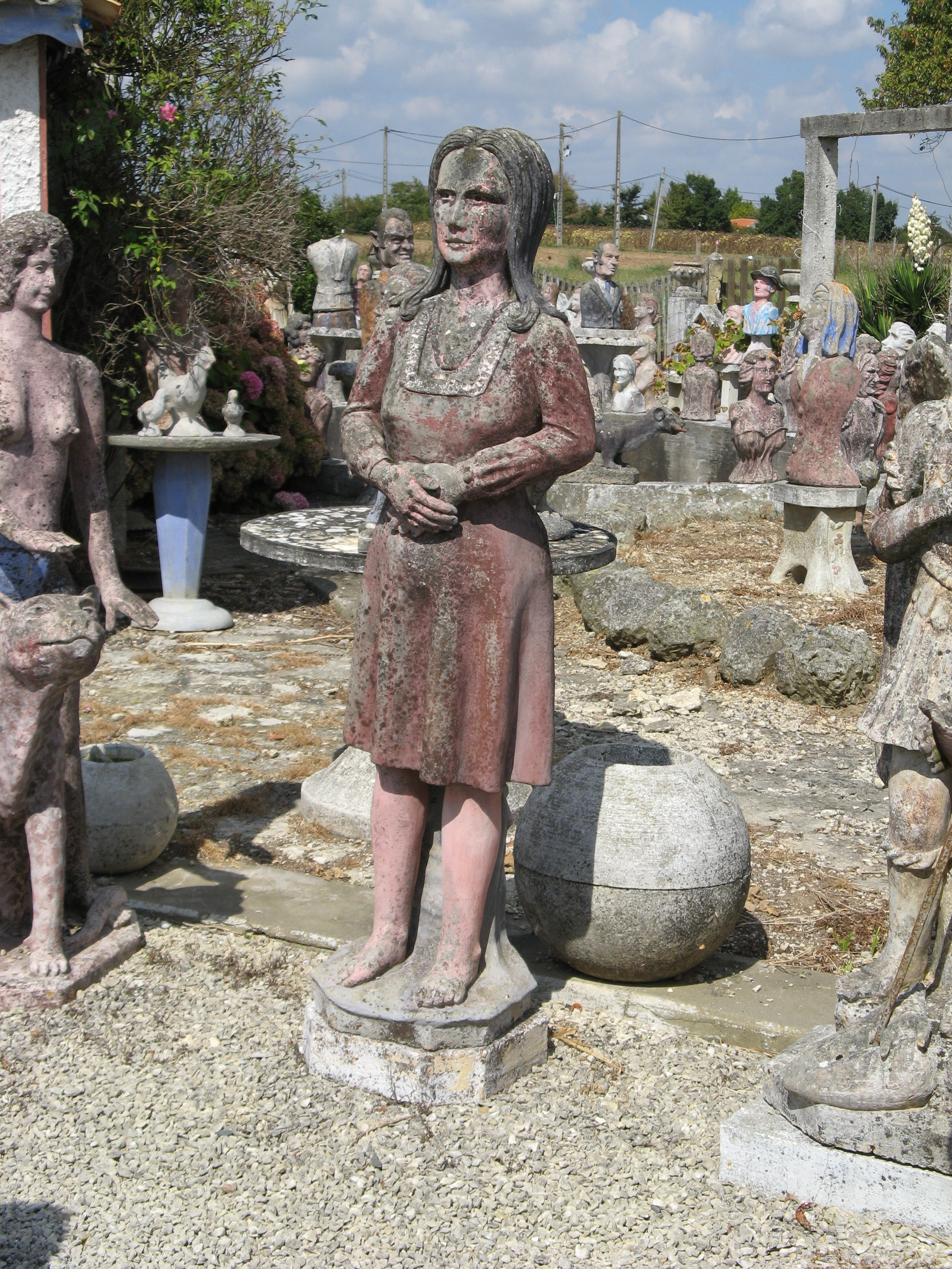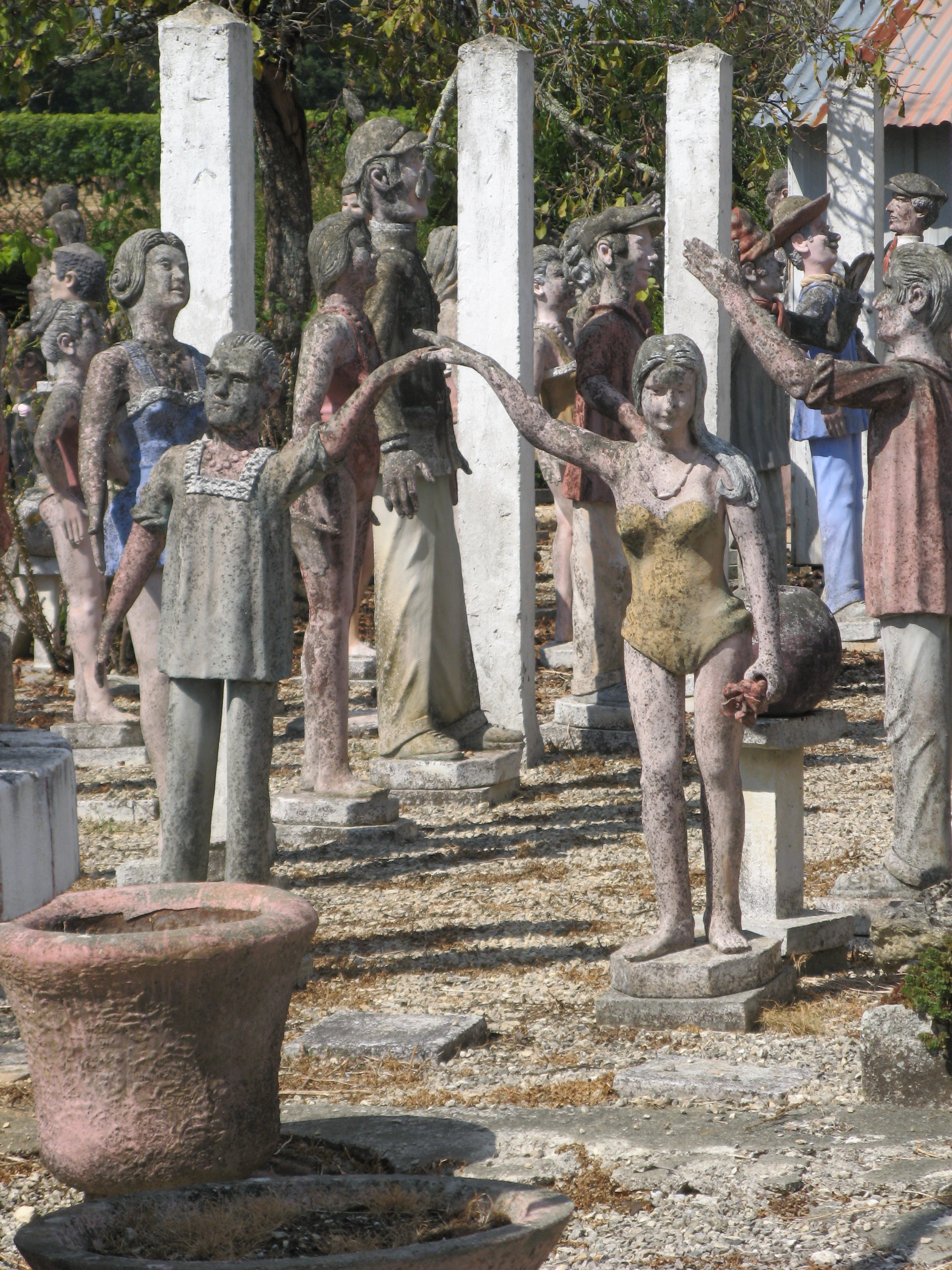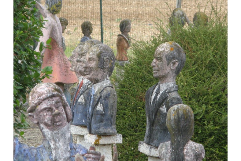 Albert began making figurative sculptures and busts, applying cement to iron frame infrastructures. He placed the works in the garden around his hand-built house. Most of the 420 sculptures he eventually created represented anonymous people going about everyday tasks, but he also produced some statues of political personalities, celebrities, and characters from fairy tales, basing his depictions on magazine photographs.Around 1989 Albert became ill and reserved his energy for maintaining the site rather than creating new works. Before his death, he sold all of his work, for a symbolic amount, to the community of Nantillé. An Association of Friends became active in promoting protected status for the garden, and as a result in 2011 the site became classified as a Historical Monument. In 2017 a restoration campaign was announced, which will include the filling of cracks, the removal of moss growth, and the application of wax to protect the sculptures.
