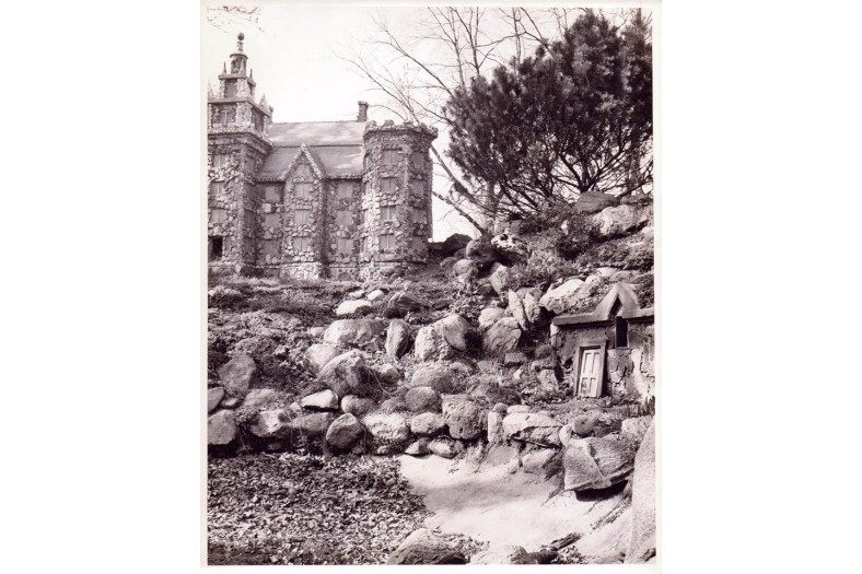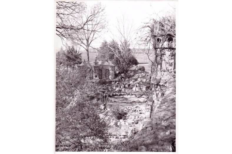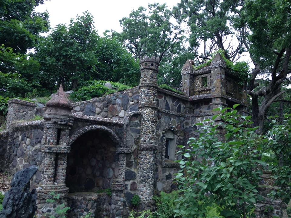 According to that same article, Christensen first set out to build the largest structure on the property, a rock and concrete castle that can fit several standing adults inside, as a root and vegetable cellar. Rocks were the choice building material as many had been left behind by glaciers moving through the area millions of years ago. Inspired by the beauty of the multi-colored rocks, more construction followed, and the castle became part of a fantasy landscape featuring multiple fish and lily ponds; undulating walkways; rock walls; miniatures; an enclosed, circular seating area; stone bridges and arches; and another smaller castle. Lush greenery and flowers completed the site.