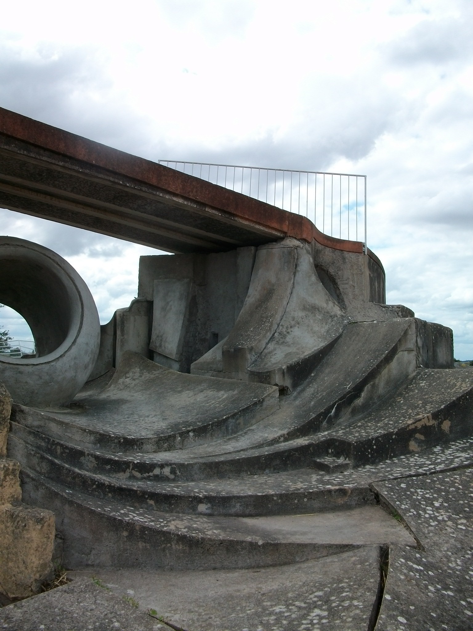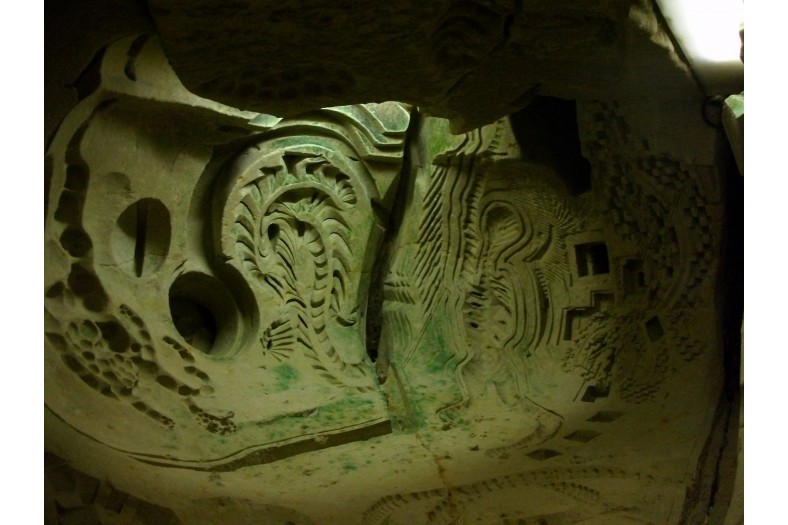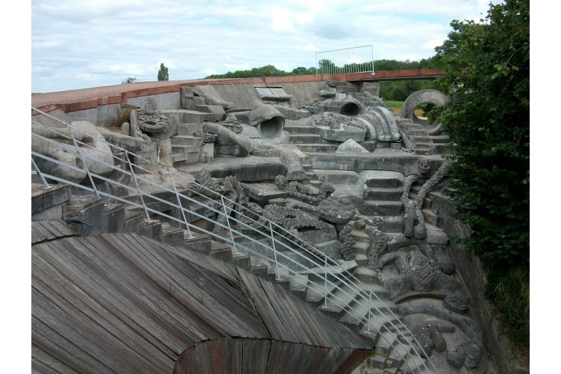 At the heart of the Loire Valley, honored by UNESCO as an international world heritage site, is a cave environment created between 1989 and 1994. Sculpted from the local stone by Jacques Warminski, the carvings extend both above and below ground level, providing a true voyage into the heart of the earth. This monumental and majestic work is composed of labyrinthine sculpted galleries and an open-air sculpted amphitheater – which they call an Amphi-Sculpture – that affords various openings into the sunken spaces. The difference in sensation between the shadow and coolness of the grottoes and the heat and light of the amphitheater is remarkable.