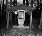 Following a trip to California with his wife Litha, where they spent time living with a group of Indians, Lowery, a TV repairman who had installed the first TV antenna in Raleigh, decided to create the Hattadare Indian Nation Park to honor not only his tribe but all Native Americans. Working on his half-acre property alongside highway 401, in 1968 he began to build a series of exhibits (including the world’s largest arrowhead, created from concrete and rock), a church, a gift shop, and a public space to hold pow-wows. Figurative painted concrete sculpture sheltered by open-air wooden structures grace the pathways through the park, which in its day became a popular attraction for school groups and Boy Scouts, among other visitors. Lowery had dreamt of building a monumental 13-story pyramid as a gathering place for all Native Americans, and had even tried to acquire the land on which the Harnett County Courthouse now sits for its location. He had hoped to include a theater within the pyramid where a play he wrote on his family’s heritage could be presented.