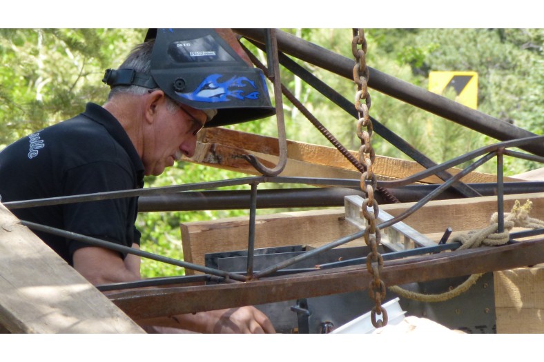 Inside is a Grand Ballroom fashioned like a Gothic church, with stained glass windows shining in on the interiors. But the real showpiece of the castle is the dragon, with scales riveted together from salvaged stainless steel hospital trays. When Jim received a donated burner from a hot air balloon, he installed it at the back of the dragon’s throat, allowing the dragon to breath fire. The vents from the ballroom’s fireplace are also positioned to make smoke fume from the serpent’s nostrils.