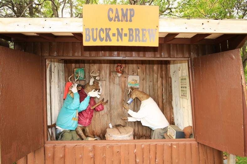 The term “Yooper” - a term derived from the initials U.P., for the Upper Peninsula – refers to the idiomatic English argot spoken by people of Finnish heritage in this remote area of Michigan. This site includes a souvenir shop, a rock museum, and a field of idiosyncratic sculptures and kitschy displays, all of which claim to be related to the local culture of Yooperism. Among the displays is a deer camp where the deer are the hunters throwing back beers and the hunters are strung up as prey, and a “Bicycle built for two old farts,” with the tandem bicycle five lengths apart so that the nagging wife can’t be heard by her husband. There is a Chiquito – the Yooperland state bird – that is a cross between a chicken and a mosquito: “in case of attack,” visitors are advised in Yooper-speak, “trow da wife at ‘um and run like hell.” There are signs and displays with a variety of bathroom humor that poke fun at farting, belching, and beer-drinking locals, as only a local could do.
