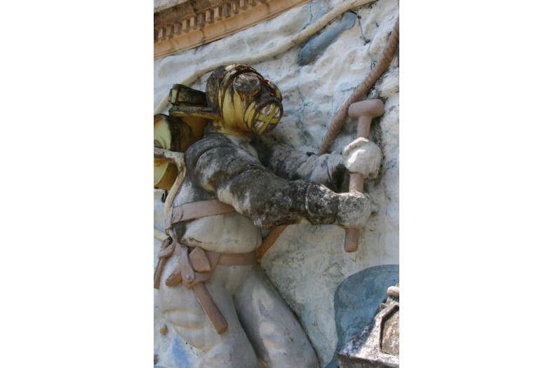 The decline of the Park began immediately following Juan’s death. Unfortunately, he had not specified funding for the Park in his will, and with the worldwide economic crisis, the value of the family’s holdings dropped precipitously. Left with few resourses, the heirs began to sell off pieces of the land; worse, during the Civil War, the Nationalist forces took over the Park and used it as a concentration camp for hundreds of Republican prisoners, using the statues and busts as targets for shooting practice. Relatives of García Naveira tried to save some of the other sculptures, moving them off-site for protection. But as the Civil War concluded, leading to the Years of Hunger in the 1940s, desperate and starving unemployed locals ripped out the steel infrastructures and lead pipes that had given form and provided water to the various bas-reliefs, sculptures, fountains, and ponds, selling them off to buy bread.