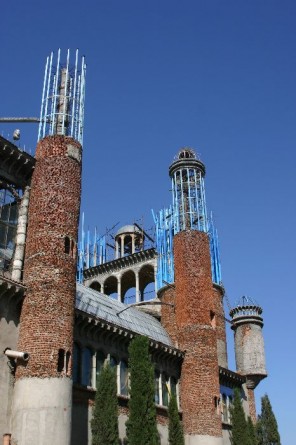 Just east of Madrid, on farmland inherited from his family, Justo Gallego Martínez has created a 24,000 square foot cathedral that may be Spain’s best known visionary environment. As a youth, Gallego entered a monastery, but when he contracted tuberculosis before taking his vows, he was expelled. With his belief in the church bureaucracy broken but his religious faith intact, he returned to the family farm and began building his own house of worship. Using recycled materials and seconds donated by local building contractors, he has constructed his cathedral almost single-handedly, fashioning a cloister, crypt, and portico; myriad spiral staircases; and huge domes that rise over ten stories. Gallego’s building plans exist only in his head, and he has no background in architecture, art, engineering, or construction. He has built his cathedral without written plans or construction permits, and so cannot obtain the licenses necessary to have the building serve for the religious use for which it is intended. As Gallego continues to work, the public is generally allowed access to the ground floor and interior courtyard, but not to the upper levels. It is unclear what the status will be upon his demise.