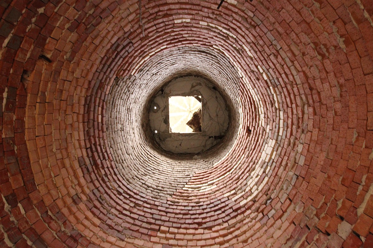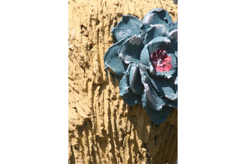 concrete mortar formed over wire mesh and rebar, bricks, paint