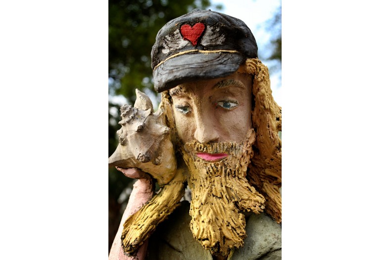 Hill was raised in Springfield, Louisiana, to the north, and traveled, perhaps out of state, every year to work on masonry projects during the summer months. In the winter, he returned to his house and the Garden in Chauvin, where it was warm enough to work year-round. The fact of Hill’s experience as a professional bricklayer has made all the difference in rescuing and maintaining the environment. Hill understood not only masonry techniques, but also his materials, and the mortars and cements he mixed for both sculptures and paths have stood up, with some assistance, to the waterlogged climate.