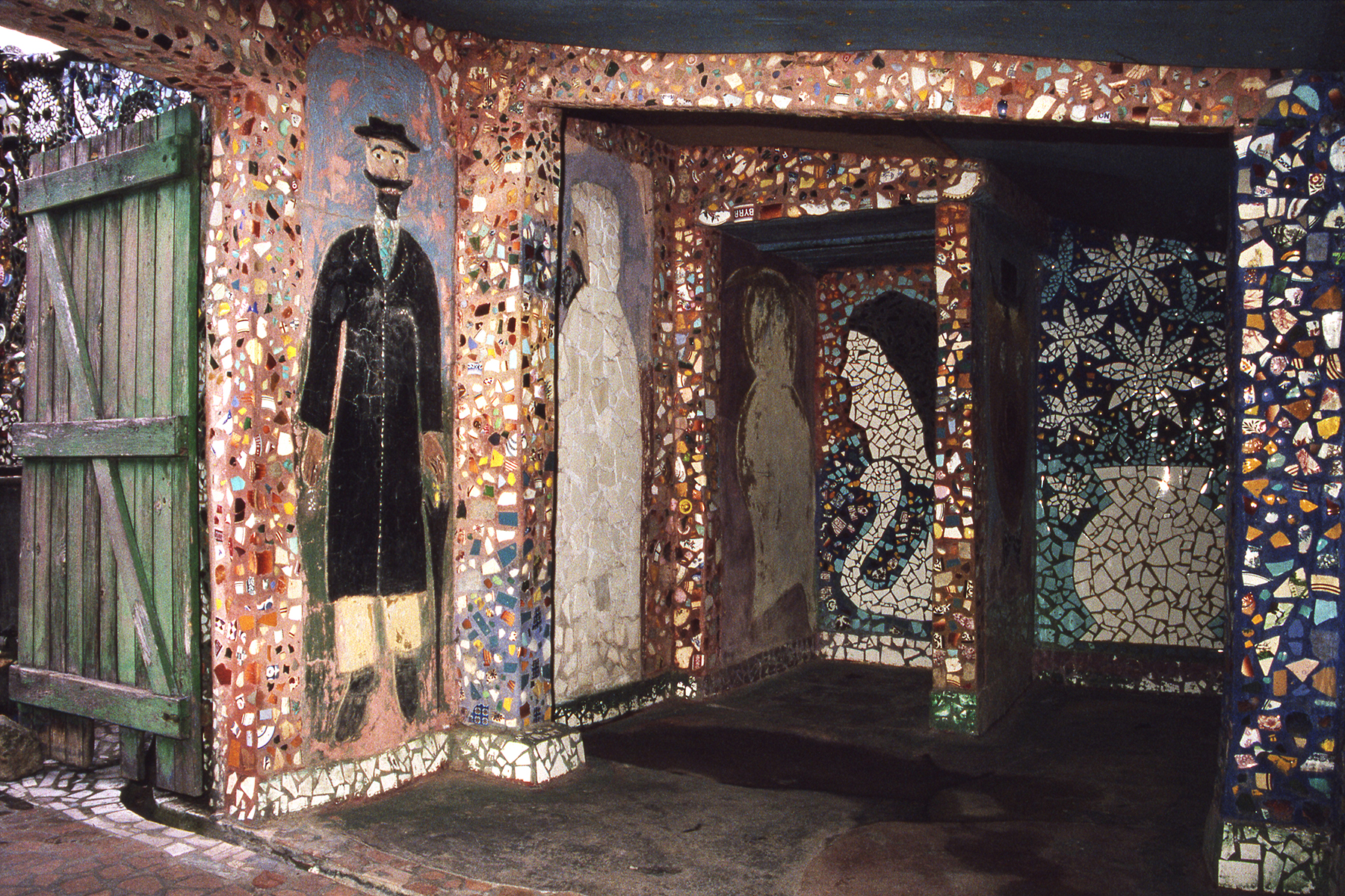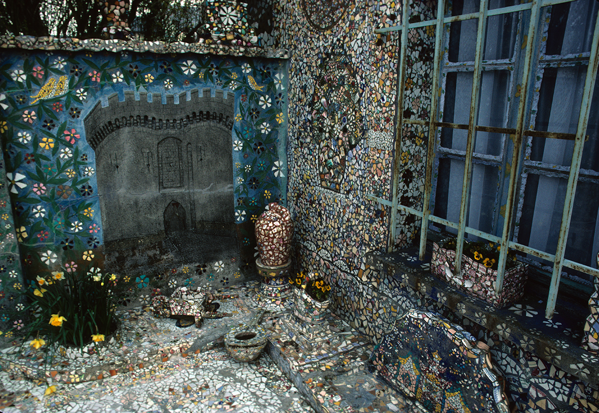 One day in 1938, when he was out taking a walk, Isidore found some pieces of crockery that drew his attention. He took them home—and began a mosaic project that would continue for almost thirty years.