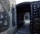 For the first seven years Isidore decorated the interior of his house, covering every surface in broken crockery and glass, including the walls, floors, ceilings, and all of the furniture. In 1945, he began work on the exterior, building a chapel, a throne, and an enclosure wall—all of which he also decorated. His designs include representations of Christian symbols and characters, animals, a view of Jerusalem, and illustrations of various cathedrals, including the famed cathedral of Chartres, located across the hill from his property. In interviews, Isidore explained he saw in dreams the patterns, persons, and buildings he would later depict in mosaic.