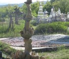 Manfredo also constructed a number of anthropomorphic characters.One figure lies simply on the ground, while a group of two seated adults and five children leaning against a hill and another figure seated at a table with a variety of dishes (all made from stones, of course) are nearby. Numerous characters, depicted individually or in groups, all give the impression of a somewhat crowded area.