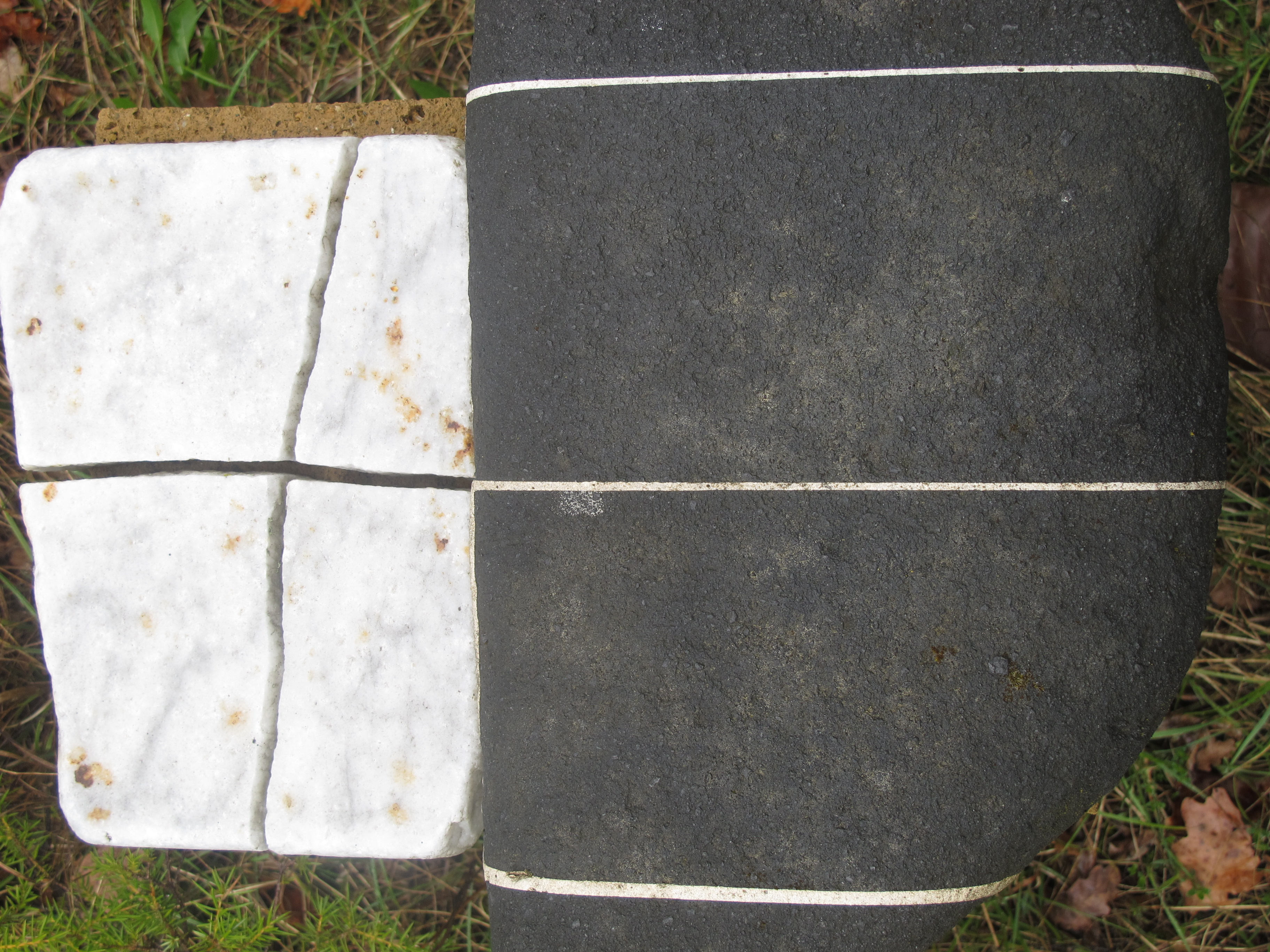 In 1981 he installed his first stone works in an unfenced part of the forest, placing his compositions loosely on the ground or upon each another. Manfredo gathered a large stock of stone in many colors, which he sorted into a large compartmentalized storage box. This also helped him make his multcolored planar compositions