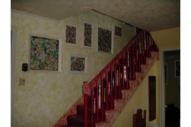 Gartelmann has also worked diligently on conserving the inside of the house, repainting the interior, conserving the objects, and precisely reinstalling the work—paintings, sculptures, ceramics, mobiles, painted furniture, stained glass, etc.—according to how Nohl curated her space. Almost every single object in the house was created or artistically altered by Nohl, meaning that JMKAC is also in the process of cataloguing thousands of objects.