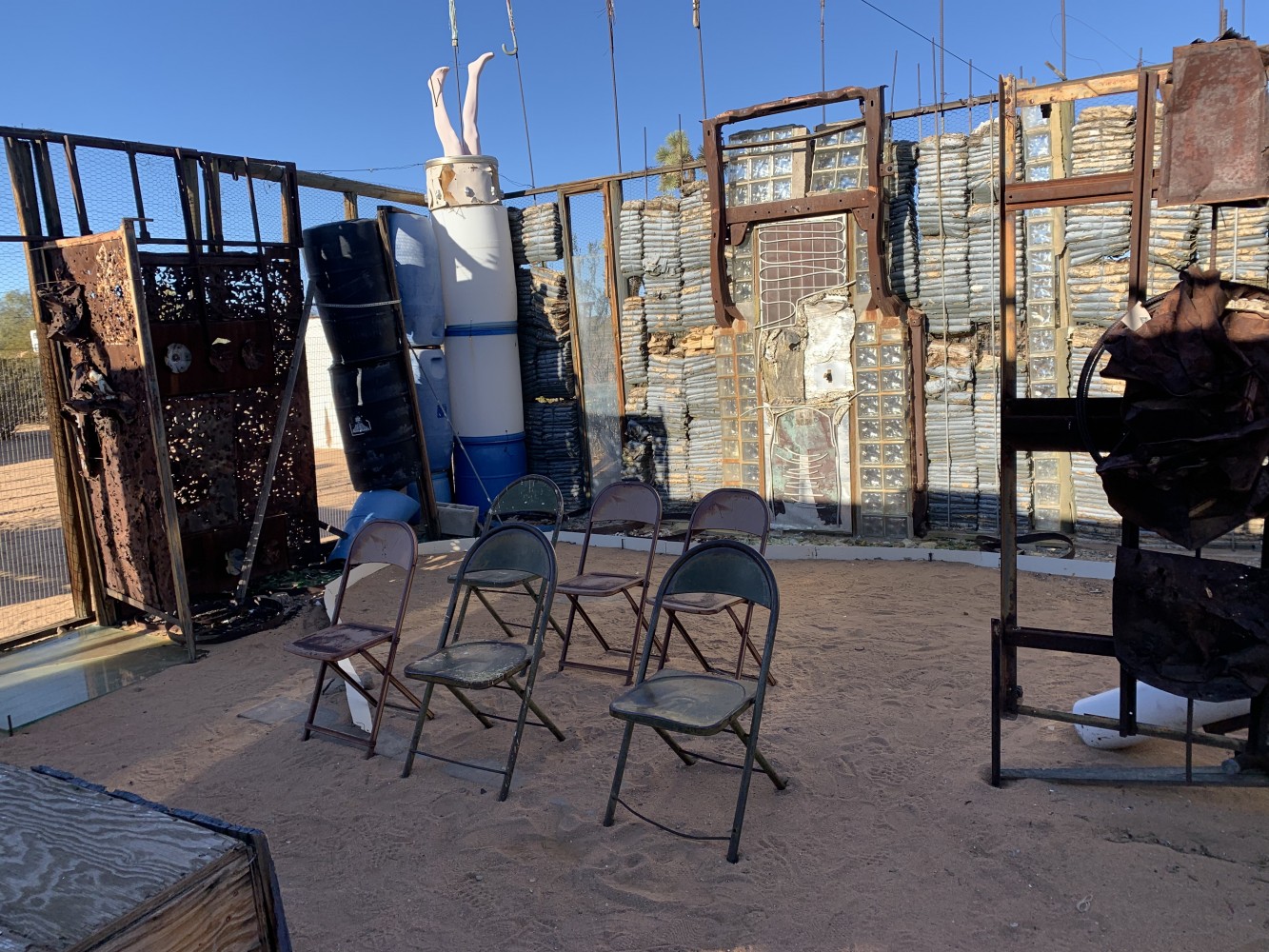 Purifoy moved to Joshua Tree in 1989 at the age of 72 when his friend, collaborator, and fellow artist Debbie Brewer offered him permanent lodging on the land she owned out in the desert.