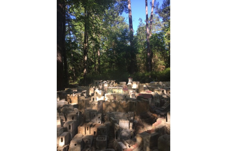 Tour guides narrate Old and New Testament bible stories as visitors view the Jordan River, the Dead Sea, Judea, the Sea of Galilee, Jericho, Bethlehem (with inn, stable, and nativity figures), Jerusalem, Nazareth, the Via Dolorosa, and more, including a pillar of salt that represents Lot’s wife, and Golgotha’s crosses and Christ’s empty tomb. Bradley has taken advantage of the internet to be able to add more structures and elements to the existing works, and the site now covers almost twenty acres.