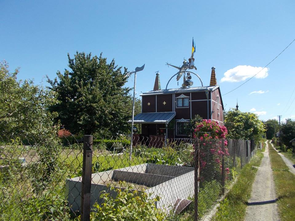 In addition to these helmets, Andrikevich's house and garden contain many more metal objects, including a shield and sword, but also a swing for children, storage boxes, and various other decorative items. However, his most spectacular creation is the dragon on the roof of his two-story house.