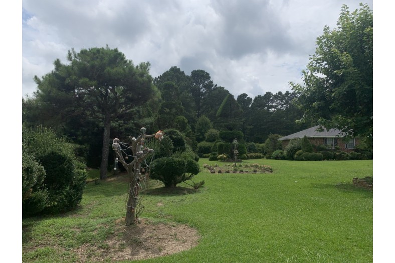 Fryar and his wife Metra were planning their relocation to Bishopville in the 1970s for Fryar’s job as an engineer with a local beverage canning factory when they discovered the perfect house. However, the Fryars, an African American family, were not welcomed by racist white neighbors who voiced the prejudicial concern that the hopeful buyers “would not keep up their yard.” (In the 2006 documentary A Man Named Pearl, both Black and white residents of Bishopville speak of enduring racial tensions in the small town of approximately 3,000 people. Not mentioned is the fact that Bishopville is the seat of Lee County–named for Robert E. Lee, the commander of the Confederate States Army during the Civil War.) The Fryars eventually found a ranch-style home with an enormous three-acre lot–Pearl’s first yard. While surveying the local neighborhoods, Fyrar noticed honorary placards bestowed by the Bishopville Garden Club titled “Yard of the Month,” a designation that many folks from small towns will recognize as a much-coveted accolade. Determined to receive this award himself (despite his twelve-hour shifts at the canning factory), Pearl began transforming his yard by planting and meticulously caring for plants that had been discarded by local nurseries. Tom Drapery of the local business City Nursery said in A Man Named Pearl that Fryar elevated “plants we thought were junk into art. I marvel at what they look like now.” While neighbors were at first confused by the flurry of horticultural activity, they admired Fryar’s seemingly ceaseless energy, noting that Fyrar would often work into the night, and when they rose in the morning, the yard would be fully transformed. He received “Yard of the Month” by 1985–the first African American to receive that recognition.