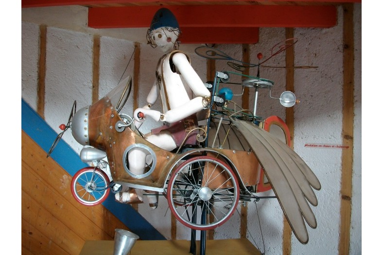 Robert Coudray is a stone carver, home builder, crepe-maker, carnival worker, peasant, beekeeper, cider maker and “poète ferrailleur [a poet who deals in scrap metals].” For twenty-five years, with patience and passion, he has built a fabulous and unique world out of nothing, in the Morbihan region of Bretagne in northwestern France. Full of humor and sensitivity, his inventions also reveal significant technical prowess. Upon this site, which is a mixture of art, poetry, film, mechanical movement, ecology, eco-construction, architecture, and nature, a visit is simply magical.