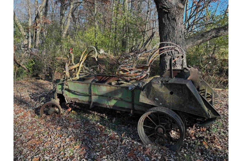 stainless steel, castoff farm and industrial materials, found objects, glass, paint