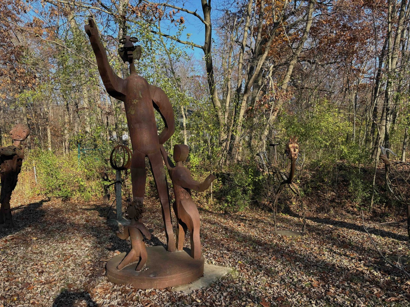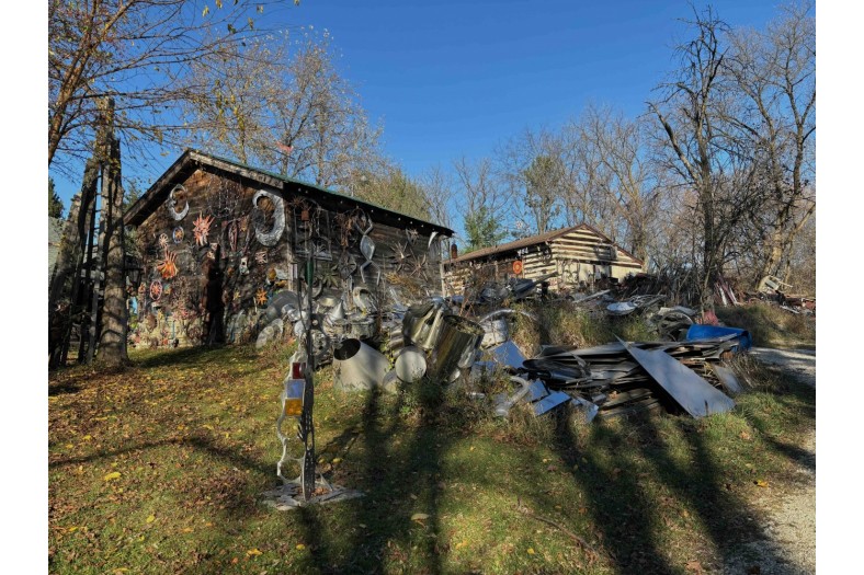 Paul Bobrowitz has spent the last 30 years creating an incredible array of metal sculptures that fill every corner of his six-acre property in Colgate, Wisconsin. Titled “Spectacular Sculpture,” the sprawling yard installation is about 30 minutes northwest of Milwaukee and features pieces of all sizes – from tiny tea kettle birdhouses mounted on trees to massive, freestanding abstractions created from castoff industrial materials.