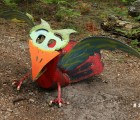 But he couldn’t stop making his sculptures, so in 2003 he found a 37-acre parcel of land for sale along the highway, and refinanced his house to purchase the property. This site, to which he moved all of his sculpture, is located across the street from Lake Superior and alongside winter snowmobile trail 417, approximately 15 miles east of Marquette. There, he created his self-named park: the large painted entrance sign welcomes visitors to see his “Junkyard Art.” Using a variety of scrap materials, he has welded and pieced together a wide variety of found objects to create whimsical creatures – some brightly painted (by his mother) and others in their natural state of stainless steel or mild steel – who straddle fallen logs or peek around trees.