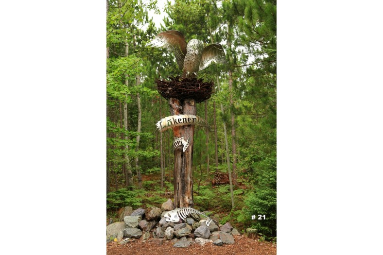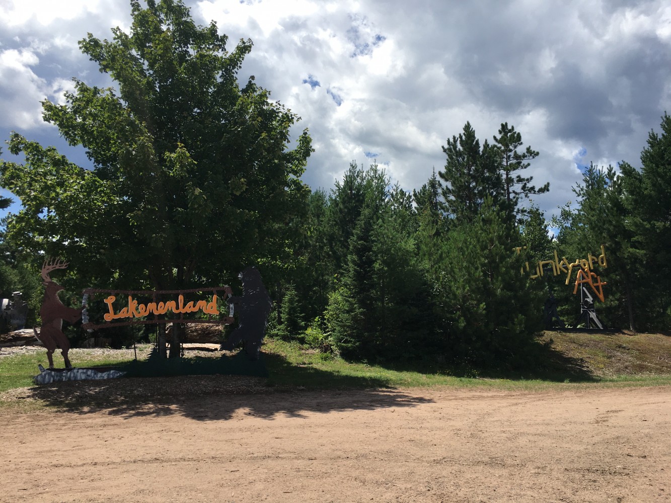 The Lakenenland Sculpture Park is 15 miles east of Marquette, Michigan on highway M-28, across from Shot Point Road. You may also find it along snowmobile trail #417. The site is open 24/7 free of charge.