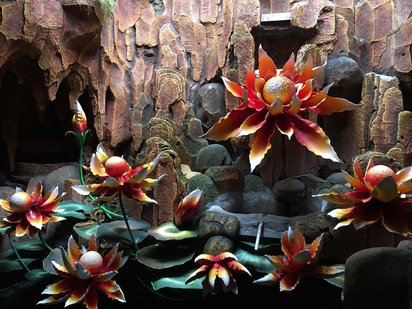 Perhaps his most important work is his own home in Cirebon, a masterfully transformed sculptural cave made of concrete and various DIY materials. The gesture and color of this work were drawn from his history of Wayang painting and have become vibrant, flowering, floating sculptures. Small pumps push water through the sculptures, causing them to spin; look more closely and one will find that the base of these sculptures is a maze-like home for real goldfish that swim throughout the works. At night this gentle, spinning, sculptural water garden comes to life with light. If one looks beneath the fabricated leaves in his environment, they will find one on which is inscribed the phrase “Tema silahkan anda bertanya” [Please ask the theme”]. The artist will probably explain that his work is his form of praise. Keep looking and one will be pleasantly amused, touched, relieved, confused, and more.